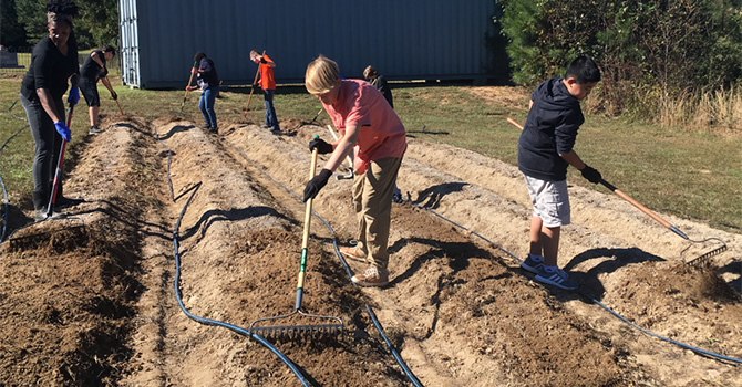Volunteers work at the community garden at Salem United Methodist Church. Photo by Glenn Stallsmith